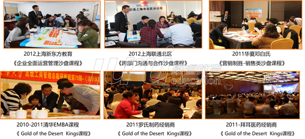 沙盤模擬演練是一種由軍事戰(zhàn)術模擬演化而來的商業(yè)培訓形式。該模擬課程把學員分成4-6組,每組4-6人,每組各代表不同的一個虛擬公司,在這個演練課程中,每個小組的成員將分別擔任公司中的重要職位(CEO、CFO、市場總監(jiān)、人資總監(jiān)等)。六個公司是同行業(yè)中的競爭對手。他們從同一起跑線,擁有相同的資源,在的激烈競爭環(huán)境中,將企業(yè)向前推進、發(fā)展。在這個課程中,學員們必須做出眾多的決策。例如市場需求分析、客戶價值分析、新市場中銷售潛能的開發(fā)等等,每個獨立的決策似乎容易做出,然而當它們綜合在一起時,許多不同的選擇方案自然產生。
